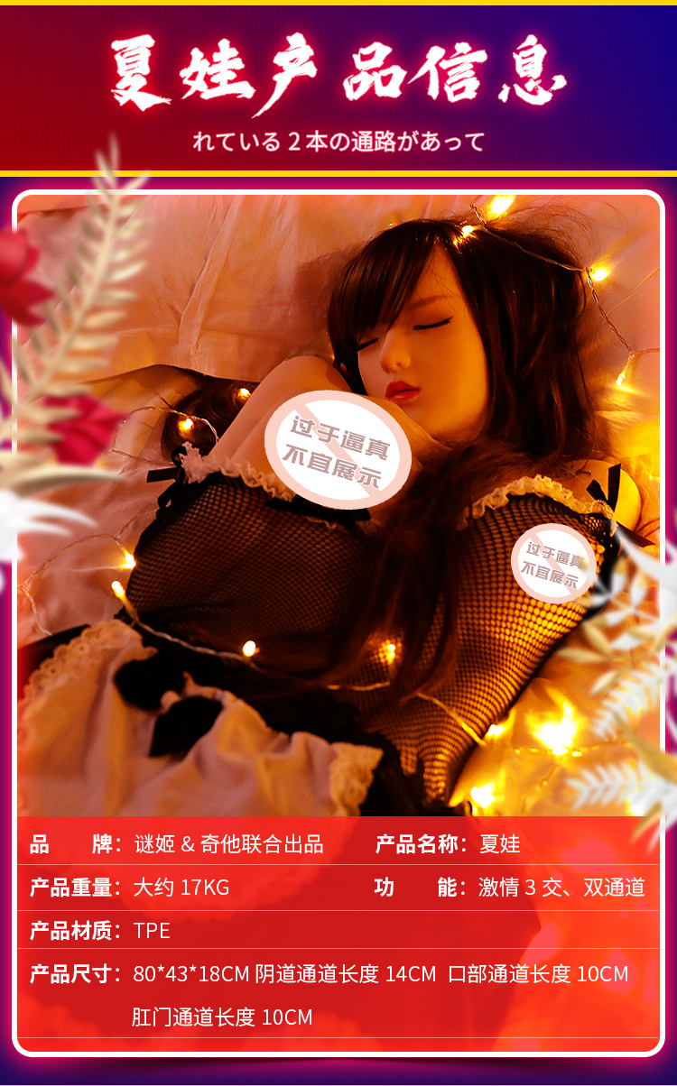 产品主体材质:TPE控制类型:手动适用人群:年满18周岁均可功能:精致五官、诱人姿势、细节还原、激情3交