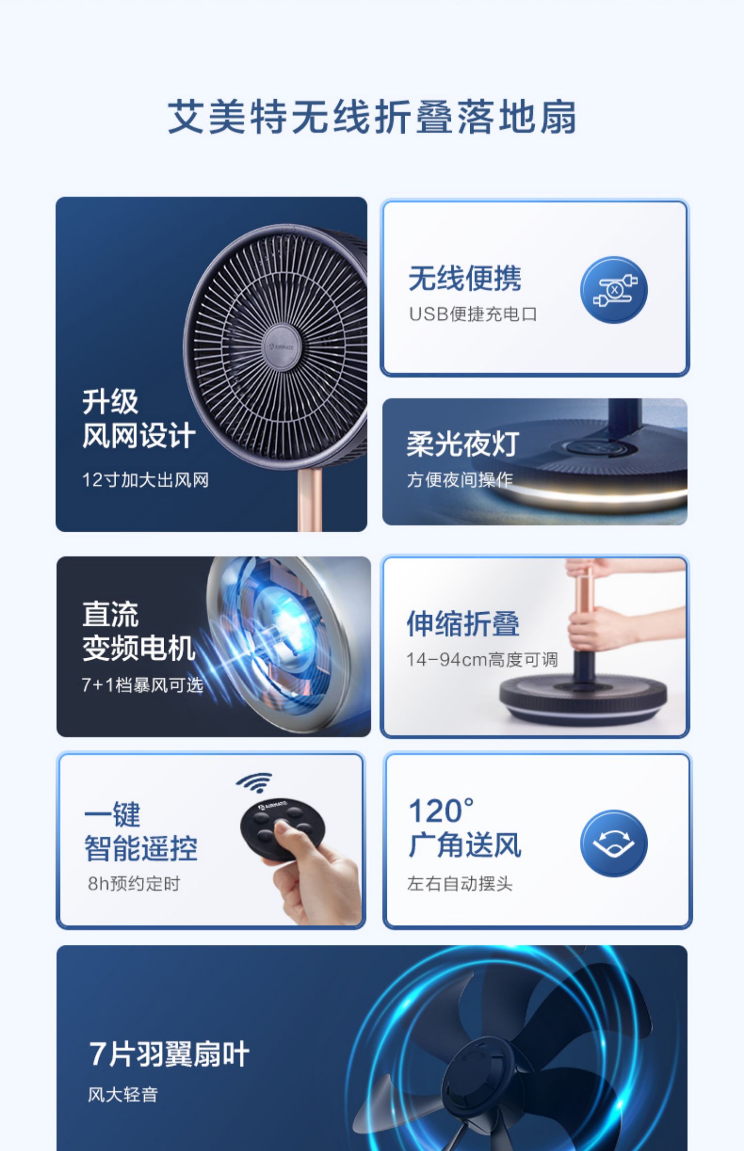 4.【多种风类】7档标准模式+1档暴风,随心所欲,纵享整夏清凉