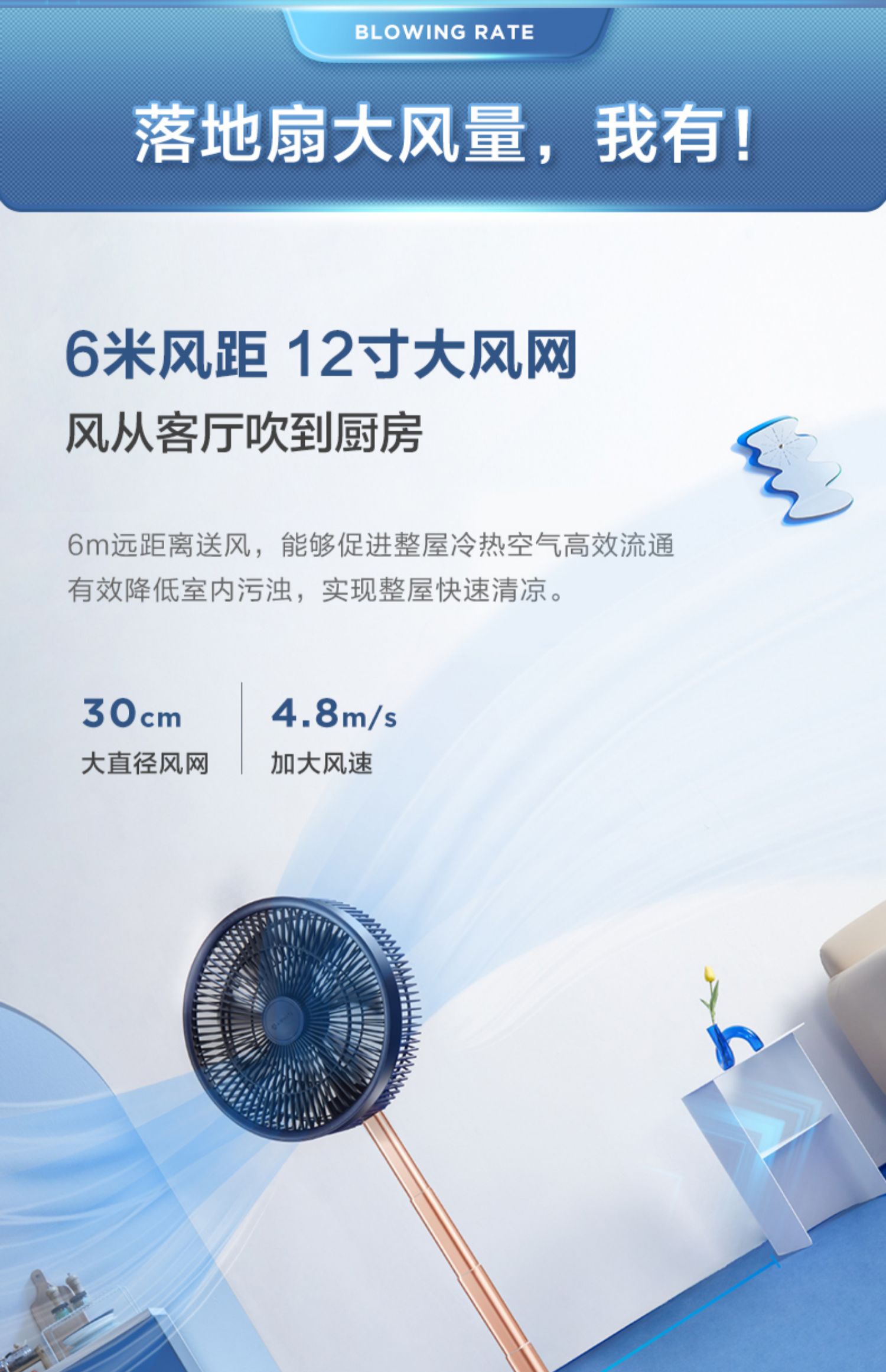 1.【加大风量】10寸/12寸大风网,加大风量,整屋快速循环